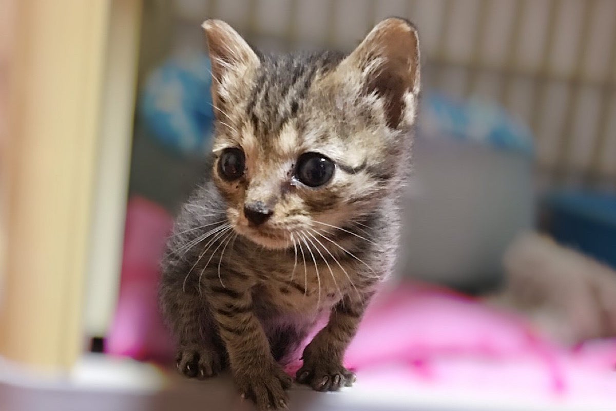 いりこは2019年6月11日に生後約15日頃に保護されました。一緒に保護された兄弟猫と比べて大きさがあきらかに小さな未熟児でした。