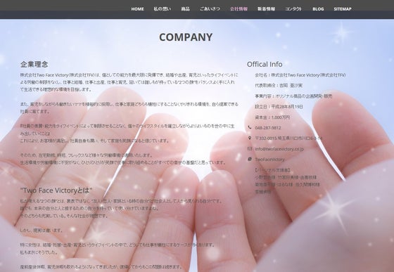 2児の母であり、シングルマザーの私が自分の手で子供達との未来を切り開くため、そして私のように子育てをしながらも自分のスキルを生かして社会に貢献したい人を応援するために2016年8月に株式会社Two Face Victoryを設立いたしました。