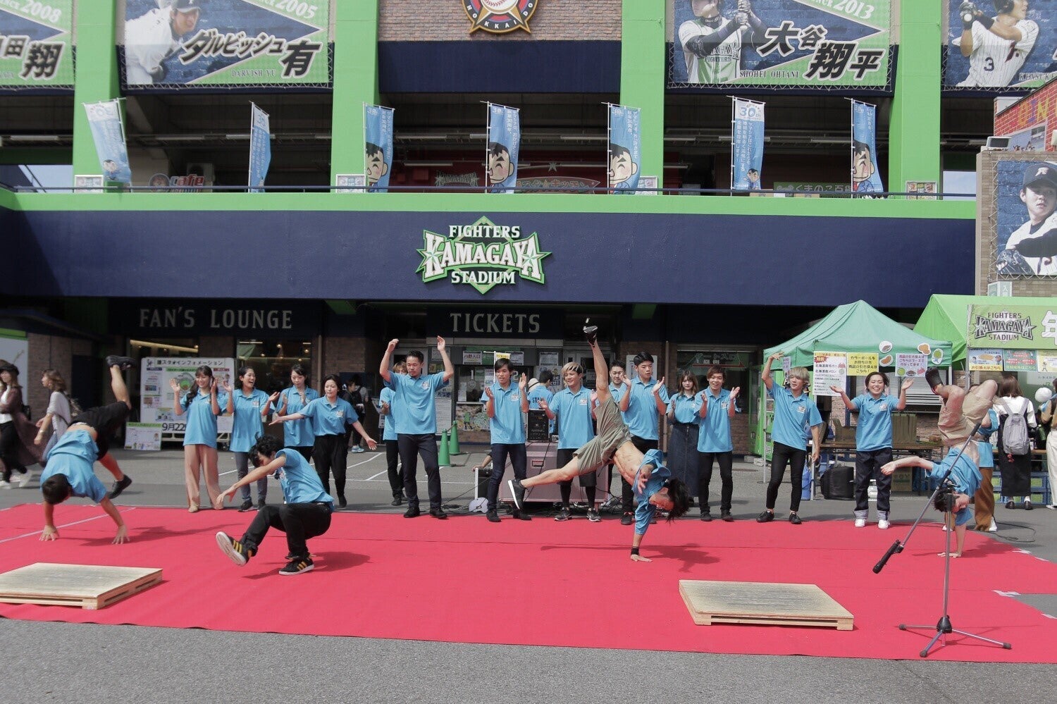 株式会社ヤマシナ商事様のお引き立てにより、千葉県鎌ヶ谷市にある日本ハムファイターズスタジアムでパフォーマンスをした経験もあります。