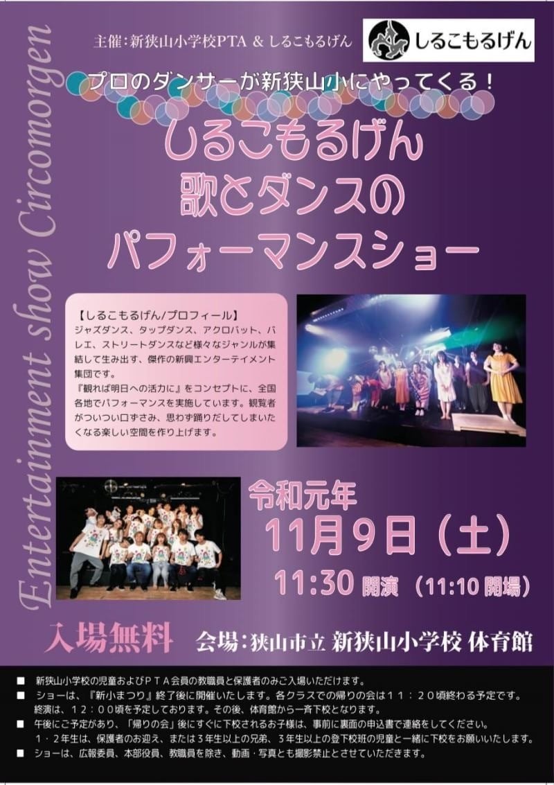 こちら、2019年、新狭山小学校PTAと私たちが共催した芸術鑑賞教室の様子です。