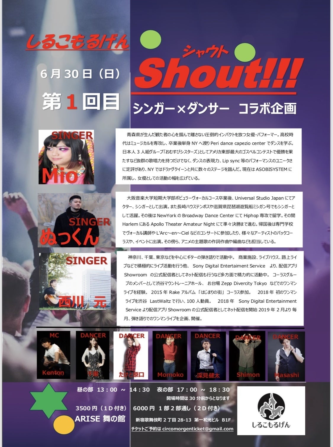 『シンガー』と『ダンサー』をコラボさせるイベント『Shout!!』を企画し、実施しました。