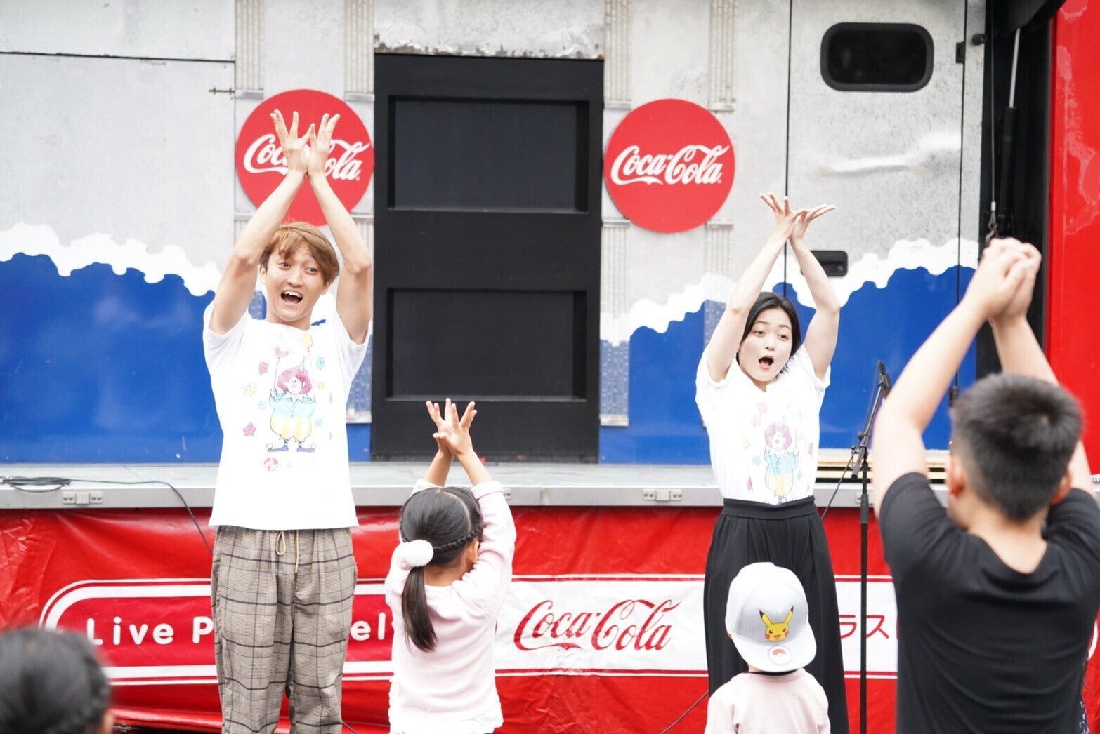 小学校巡回公演では『歌って踊ろう!』をコンセプトにした30分間のプログラムです。
