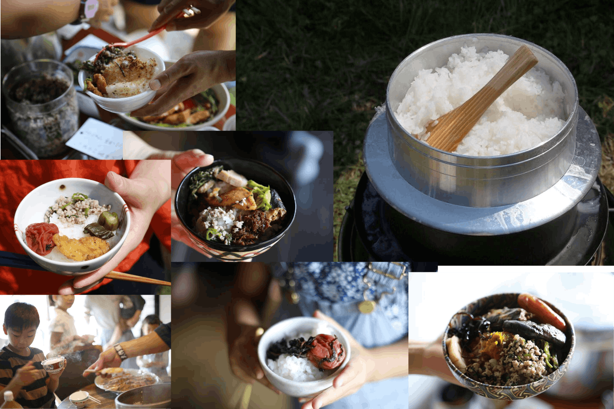 羽釜で炊いたごはんを各自持ち寄ったおかずで食べる「朝ごはんの会」などを御殿場市で行ってきました。