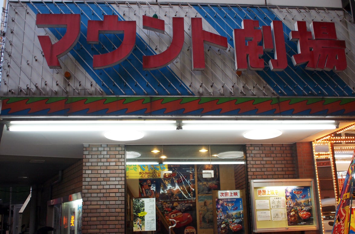 「マウント劇場」は、昭和の風情を残す街の小さな映画館ながら、映画『真夜中の弥次さん喜多さん』(宮藤官九郎監督作)の撮影にも使われたこともある場所です。