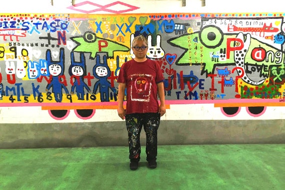 絵を描き始めて、その後にバスキアをみて、ものすごく彼の作品に影響を受けました。絵ににほんの言葉、海外の言葉をのせる作品もあります。
