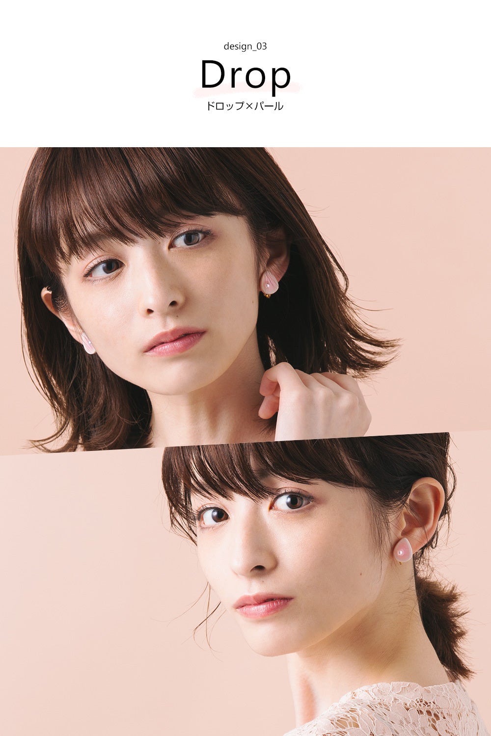 上品ながらも可愛らしいコロンとしたしずく型モチーフはパールの位置がお気にいりのポイントです。少し外した位置にあるパールがちょうどいいアクセントになり、控えめながらも確かな存在感を放ってくれます。