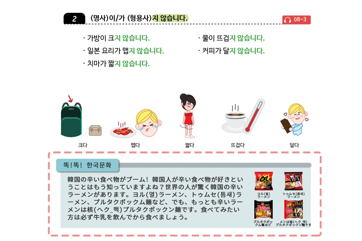 再訪問やオンライン授業を受けられない方から、日本に帰っても韓国語の勉強を続けてたい、一人で勉強できる教材があれば嬉しいとよく言われました。今ハニジェミで使用している韓国語教材は、先生と一緒に勉強する授業用として開発されたものです。それで一人で勉強するには難しさがあるはずです。
