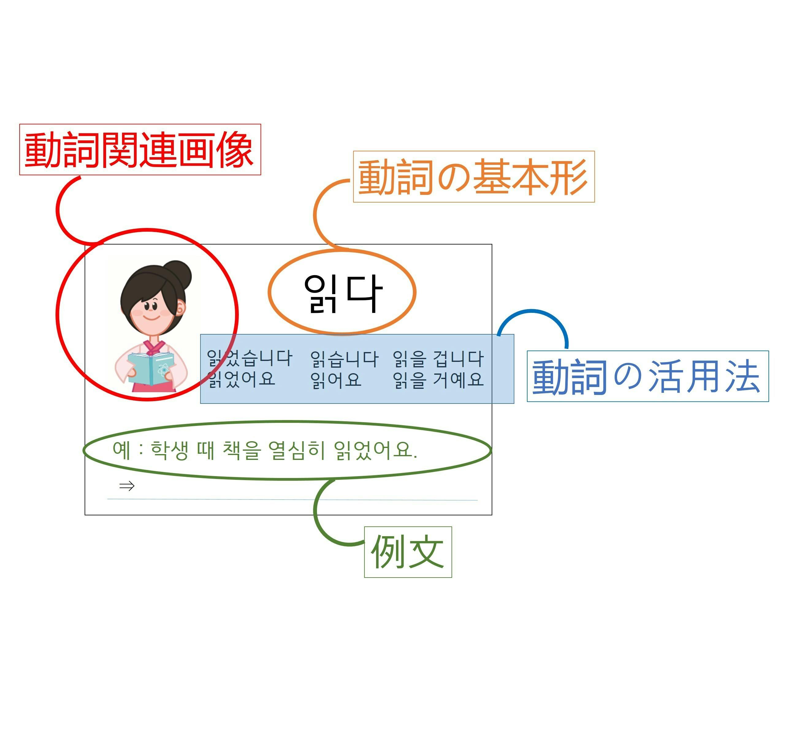 4000円 ➞ 独学用韓国語教材 + 基礎動詞カード(60枚) +MP3ファイル