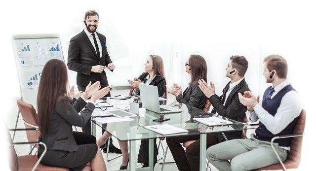 イヤフォンユーザーがホストとなり、母国語でグループ会議やスピーチを行えます。招待された人たちは、それぞれの言語で聞き取ることができます。