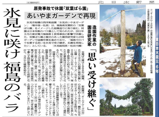 私たちが成功させたい花壇について大きく新聞に取り上げられました。成功することで少しでも双葉ばら園の思いや、東北の復興の力になればと思います。引き続きご支援お願いいたします。