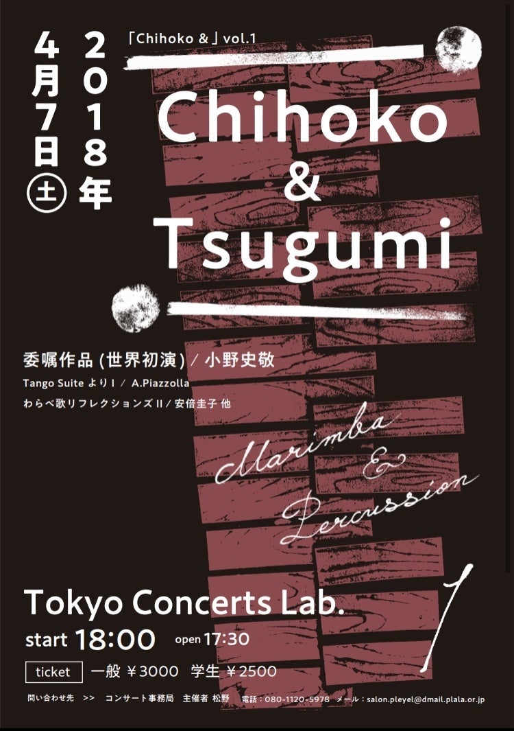 皆様はじめまして!マリンバ弾きの木上智保子と申します。マリンバのための作品を、演奏したい!増やしたい!知ってもらいたい…。そうじゃ!自分が作ってもらって演奏しよう!と2018年に始めたコンサートシリーズ「Chihoko&」が東京を飛び出し初めて北海道札幌で開催することになりました!