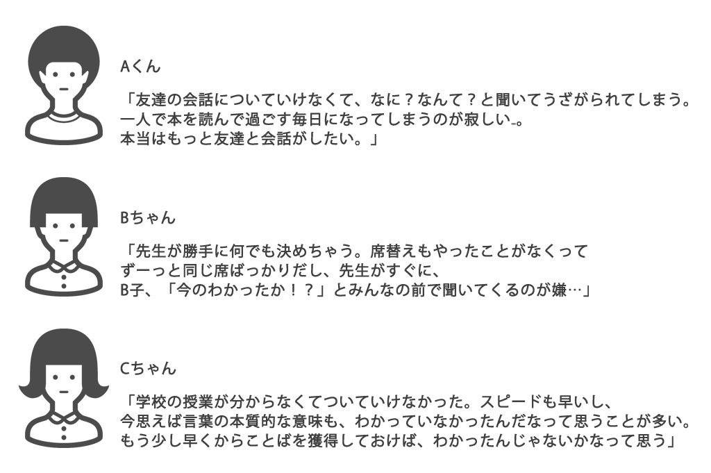 デフサポの教材を通して、ことばの力の土台ももちろんですが、同じような悩みを持つ仲間と繋がったり、わあ、先輩もこんなことで悩んだんだなあ…と安心してもらえるような場所をつくりたいと考えています。