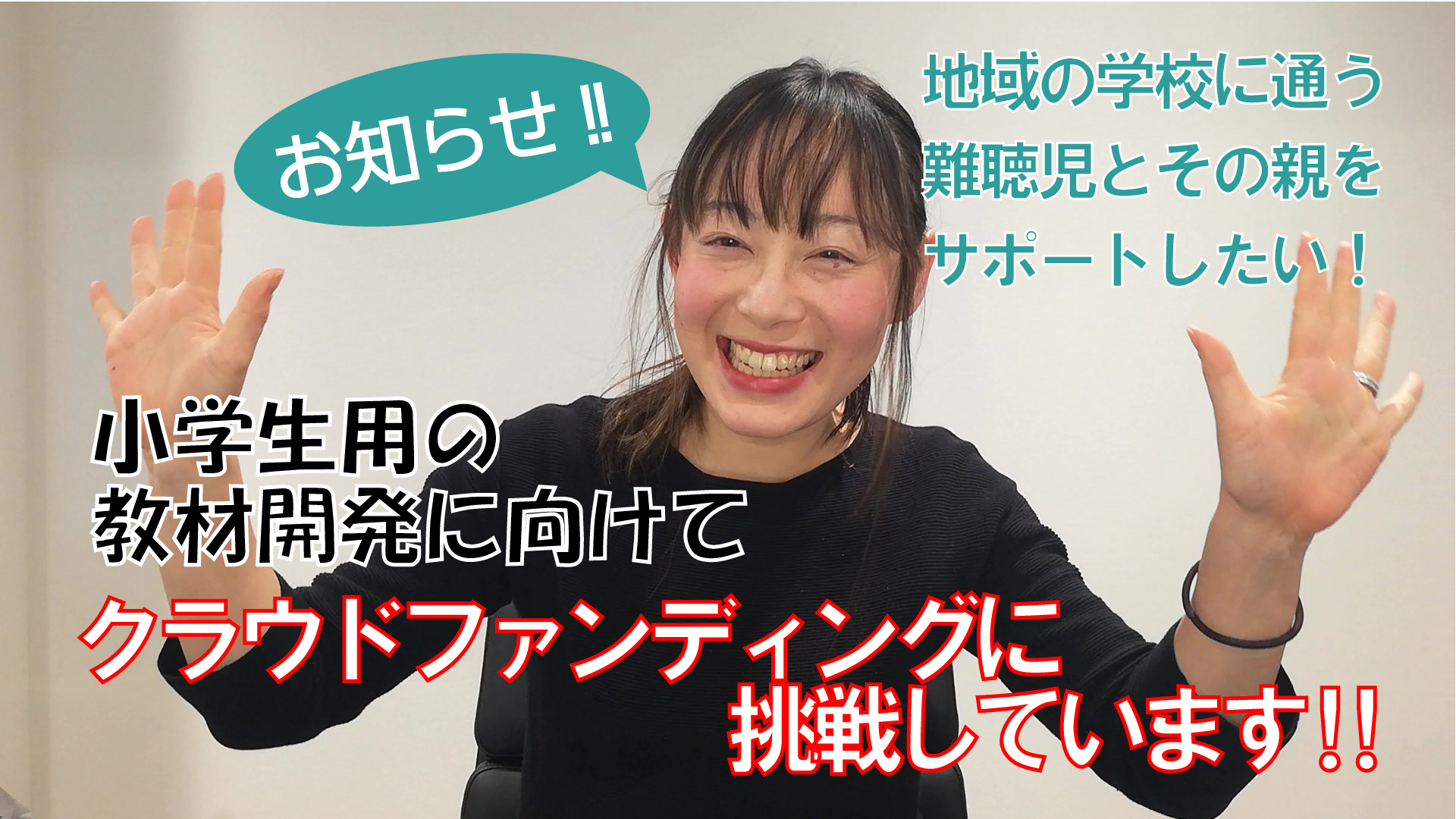 デフサポのクラウドファンディングのプロジェクトページをご覧いただきありがとうございます。また、ご支援くださっている皆様、ありがとうございます!遅ればせながら、今回のプロジェクトをどうしてやろうと思ったのか、その想い、背景を動画にしました。すでにご支援くださった方も、そうでない方も、ぜひご覧になってください!https://www.youtube.com/watch?v=qsY7mI3Byr4これからも達成に向けて頑張りますので、ぜひ引き続き応援よろしくお願いします!