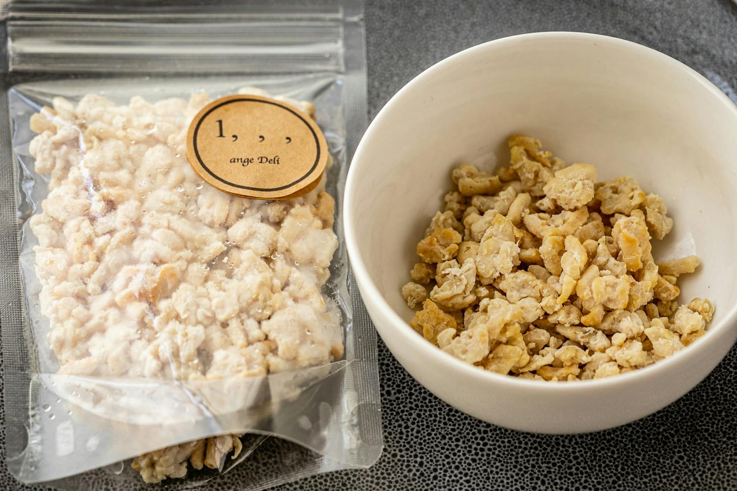 トッピングふりかけの素材は、鶏胸肉とささみの2種類をご用意。