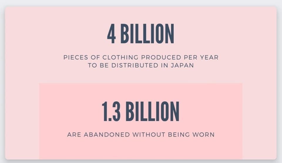 現在、日本での流通のために毎年40億点以上もの服が作られ、そのうちの13億点が新品のまま開封されることもなく捨てられているという現状があります。