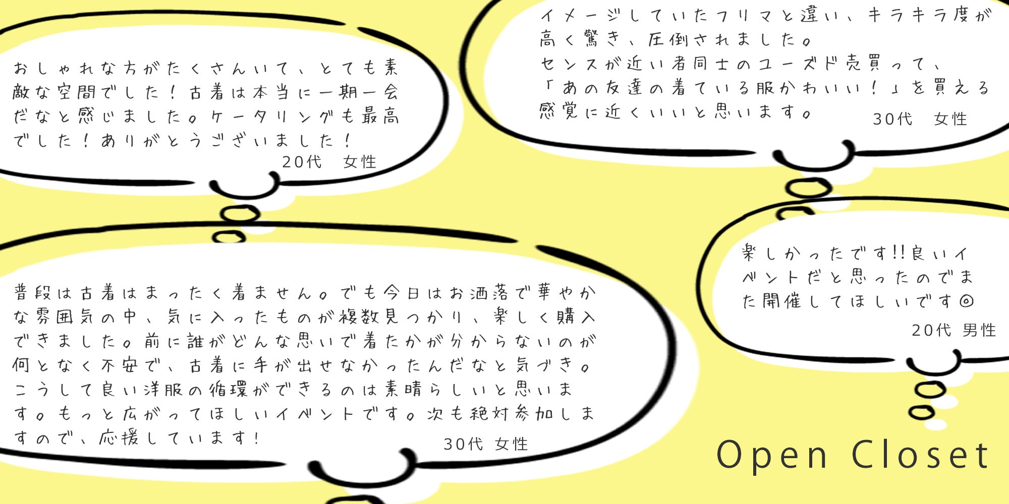 Open Closet のイベントはいつも大盛況で、たくさんの方に「価格で勝負しない二次流通」の商品をお届けしてきました。また、お洋服を通してユーザーさん同士のSNSでの交流が生まれたり、着用画像をUGCとして買い取らせていただいたり、一度人の手に渡った二次流通だから出来ることがたくさん見えてきたプロジェクトでした。