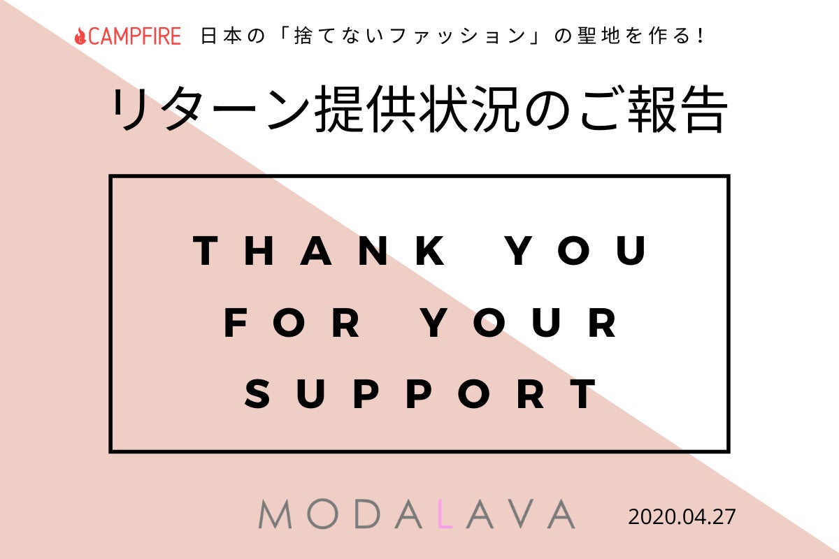 リターンの提供が遅れているものが多数あり、ご迷惑をおかけしている皆様におかれましては大変申し訳ございません。すぐに提供ができるよう準備を整えておりますので、今しばらくお待ちくださいますようお願い申し上げます。
