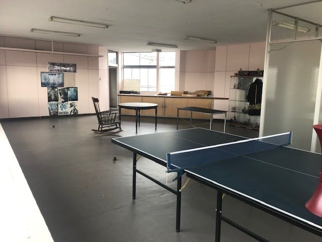既に建物内にある、テーブルや卓球台や卓球マシンなどは