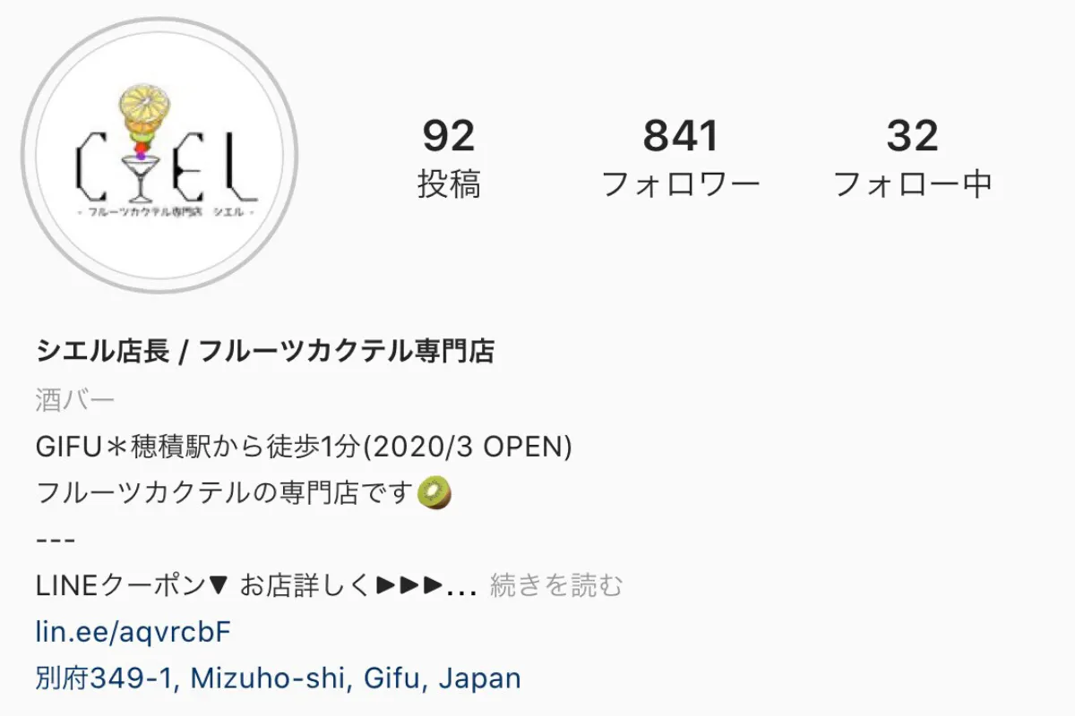 インスタグラム →https://www.instagram.com/bar_ciel_gifu/