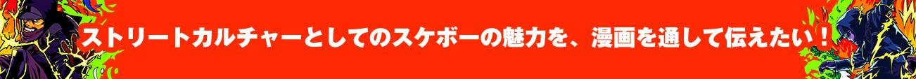 今回の漫画では、そんなスケートボードのもう一つの「側面」でもあり、その「起源」とも言える、”ストリートカルチャーとしてのスケートボード”の魅力を出来るだけ沢山の人たちに知ってもらいたいと思っています。