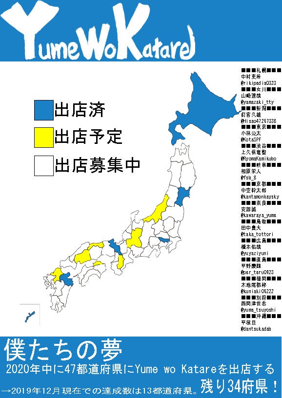 まずは2020末までに日本47都道府県に夢を語れる場所を作る!