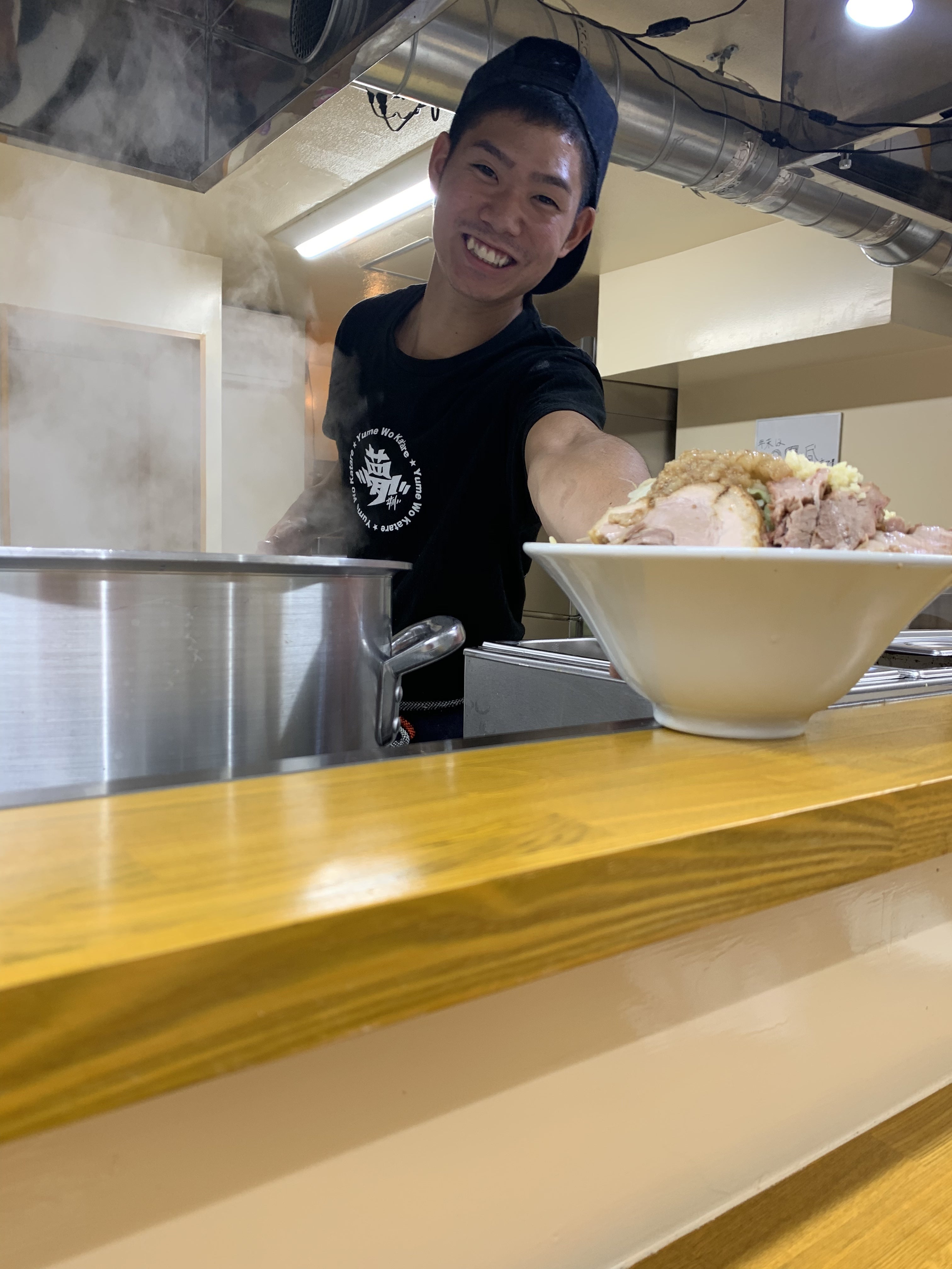 大分県生まれ大分県育ち。18歳の時から瓦屋として本格的に修行し、23歳で独立し一人親方として働きながら夢を語れ別府で2019年4月から師匠西岡津世志氏の元でラーメン修行