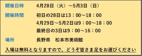 今回、長野県松本市で三回目の写真展を開催することにしました。