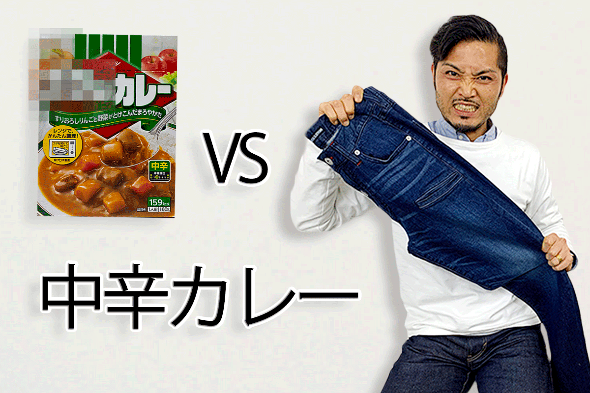 【 カレーがこぼれても汚れない = 水分・油分を弾く】を追求していった結果、カツカレー専用ジーンズ(カレーがこぼれても汚れないジーンズ)を作ったら・・・なんと!