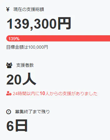 現在もご支援者数を伸ばしております!