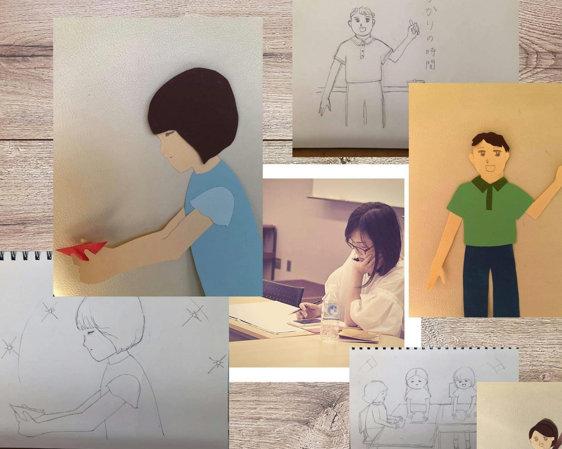 2020/02/19 14:00-ともちゃんは、絵本を作って、何をしていきたいと思ってるの?読み聞かせをしたいです。かかりの時間を、小学校3,4年生に聞いてほしい。昔、読み聞かせをしていた時に、3,4年生に向けて毎年読んでいた絵本があって。アリソン・ウォルチの『わたしのいちばん あのこの1ばん』っていう題名の本。その絵本は、わたしの中のいちばんは、自分の中にあるよ。っていう絵本で。 4年生くらいになると、周りを気にし始めて、強い子についていっちゃったり、悪いことすることがかっこいいと思っちゃったり。自分なんてダメだっていろんなことをやらなくやってしまったり。 ちょうど、そういうことをはじめる時期だと思うんだけど。 そういう時期にそういう絵本を読むことで「そうじゃないんだよ。自分のしたいことをしていくといいんだよ」って伝えたくて。 で、かかりの時間の絵本、『教室は小さな宇宙』をその時期の子に読んでほしいって思って、今つくっています。 -何で、その絵本じゃなくて『教室は小さな宇宙』の絵本を読んで届けたいの? 『わたしのいちばん あのこの1ばん』もいいんだけど、『教室は小さな宇宙』は、もうちょっとひろがりがあるの。なんかね。実際のクラスの子どもたちが変わっていく様子がわかる。 (※実際に夫のばななせんせいがクラスで実施していた「かかりのじかん」がもとになっています「かかりのじかん」は・自分をしあわせにすること ・周りをしあわせにすること のたった2つのルールだけで、それぞれのかかりをする時間です。 ひとりで黙々とやるのもすごくいいし、やっていく中で人とのつながりも生まれるから、人目は全然気にしなくていいんだよ。ってことを、言ってるから。 その本と本質は一緒かもしれないけど、ちょっと違うの。―なるほどー。読み聞かせだけじゃなくて、図書室などにも置いてほしいって言ってたよね?読み聞かせたいに加えて、学校の図書室などにも置いて、みんなに読んでもらいたいと思っています。読んで欲しいですね。制作途中の絵本の一部-クラウドファンディングの本文を編集してたときに。ともちゃんの言いたいことかな?って思ったメッセージがあって。。『この絵本を読んで、あなたたちはかけがえない存在なんだよ』って伝えたい。たくさん人がいるけど、人と違っても同じでもいい。クラスにとって、あなたはどんな子でも必要なんだよ。って受け取ったんだけど。実際、ともちゃんはどうだったんですか? そこ伝えたいと思った。自分のときはクラスに40人くらい子どもがいて。自分って大事だな。って思わなかった気がする。そういう風に感じちゃう子がいたら寂しいな。って思って。 その子がかけたら、そのクラスじゃなくなっちゃうんだよ。って。こういう子が良くて、みんながそこに習わなくちゃいけないなんておかしいよね。みんながいて、クラスなんだよ。って。伝えたいと思いました。 -自分の体験だと、それぞれ自分を楽しく生きてきた時期があって。思春期がはじめると、人と同じが丸っていう時期があって。自分を律して生きていくような。そうする経験もいいけど、その、あなた自身の素敵なところは変わらずあるよね。ってところを、感じたんだよね。 自分の中にも宇宙があるし、みんなでひとつの宇宙だし。子どもたちがこれを読んだら、何を感じるかな? 小学校3年生、4年生って全然違うと思ってて。3年生はまだ自己中心的で自分を爆発させる時期で。4年生になるとちょっと周りが見えてきて、人に合わせたりしてく時期だと思うんだよね。 この時期に、こういうことを読んで、そのまますぐに行動にはうつせないかもしれないけど。ちょっと心の奥に残ってると、その後の5,6年生が違うんじゃないかなって。思って。 その時期に読んで欲しいな。って思ってます。-この絵本に出会ったことで、5,6年生が変わる違いってなに? 多少、人に合わせたりしていくんだろうけど。逆に、ものすごくわがままになってっちゃう人もいるんだろうけど。 でも、自分の好きなことは続けていこうっていう風に思ってくれる子がいるんじゃないかな。って思います。 -ともちゃんが、折り紙を折り続ける子に共感するって前に話してたよね。 自分がああいう子だったんだよね。目立たないけど、黙々とやってる子。親に「ちゃんとしなさい」って怒られて。それでも、やめずにいれたらよかったんだけど、やめてしまった自分がいて。 わたしは、そっちの子に共感しちゃう。 -やめなくっても大丈夫なんだよ。っていう感じなのかな?ともちゃんは、やってたことって、絵を描いてたの? うん。描いてたた、描いてた。描かずにはいられない感じだった。 -その頃のともちゃんが、この絵本『教室は小さな宇宙』を読んだらどう感じると思う? わたし、自信のない子だったから。。。「わたし、これでいいんだ」「このままでいいんだ」って思えるような気がして。自分をしあわせにすることが、周りもしあ