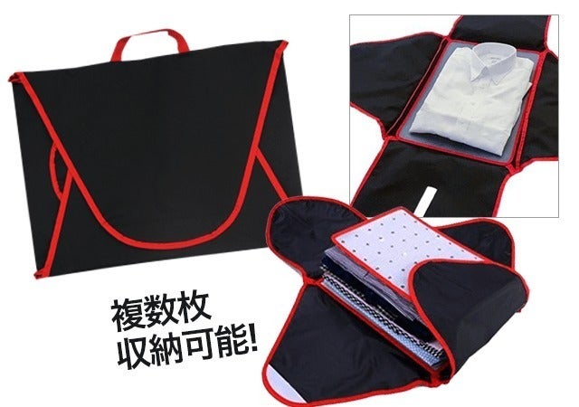 ・衣類しわ防止バッグには硬さのあるパネルによって、ワイシャツなどのしわにしたくない衣類を、しわになりにくいように収納をすることができます。