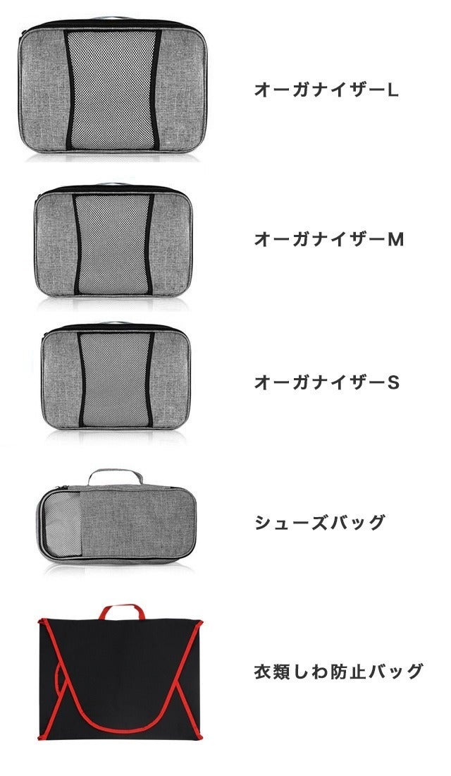 ・ 複数の収納バッグでの仕分けにより、スーツケース内の衣類の整理整頓をすることができます。