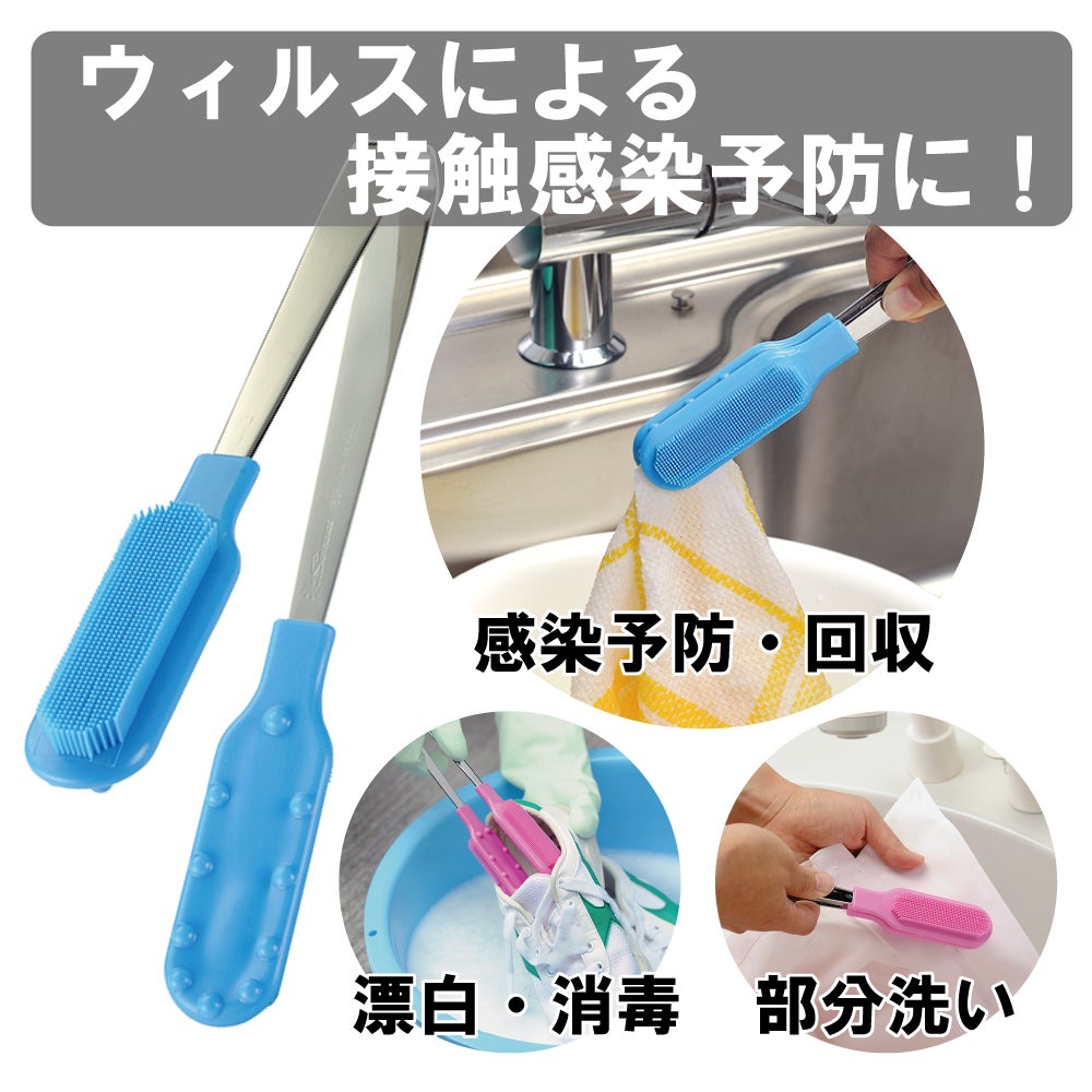 絶対に触れない!【洗濯ブラシトング】を接触感染の対策グッズとしてご提供します。