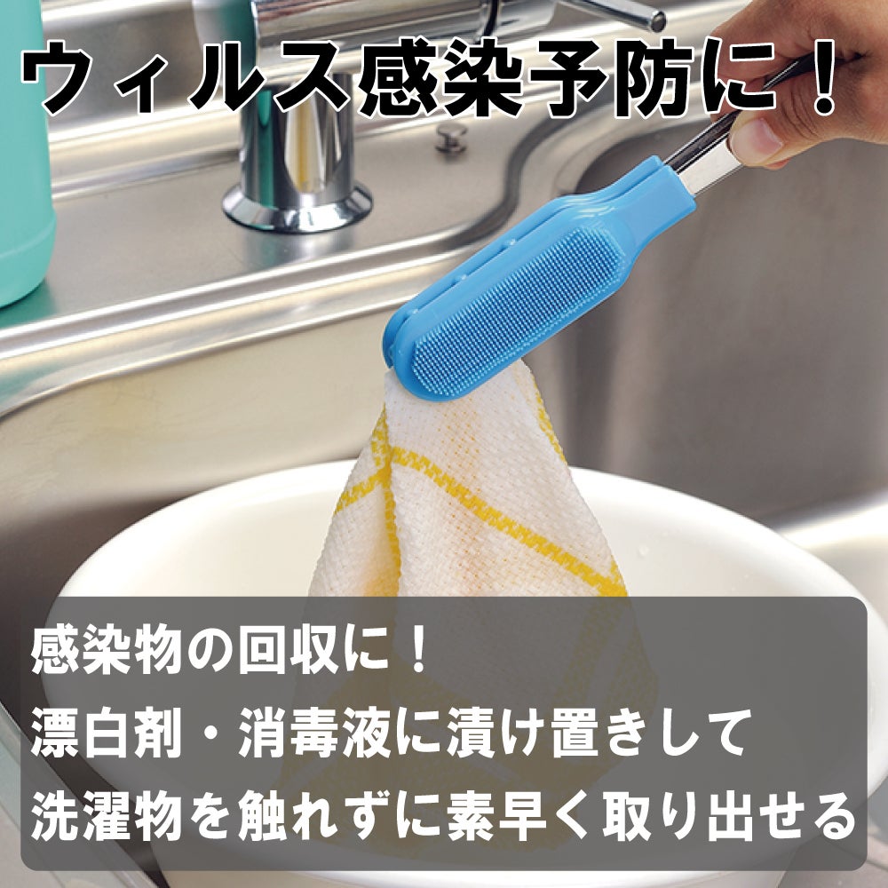 ・ゴム手袋をする手間なく、トングで汚れ物を漂白剤・消毒液に手を触れずに、取り出しができる!