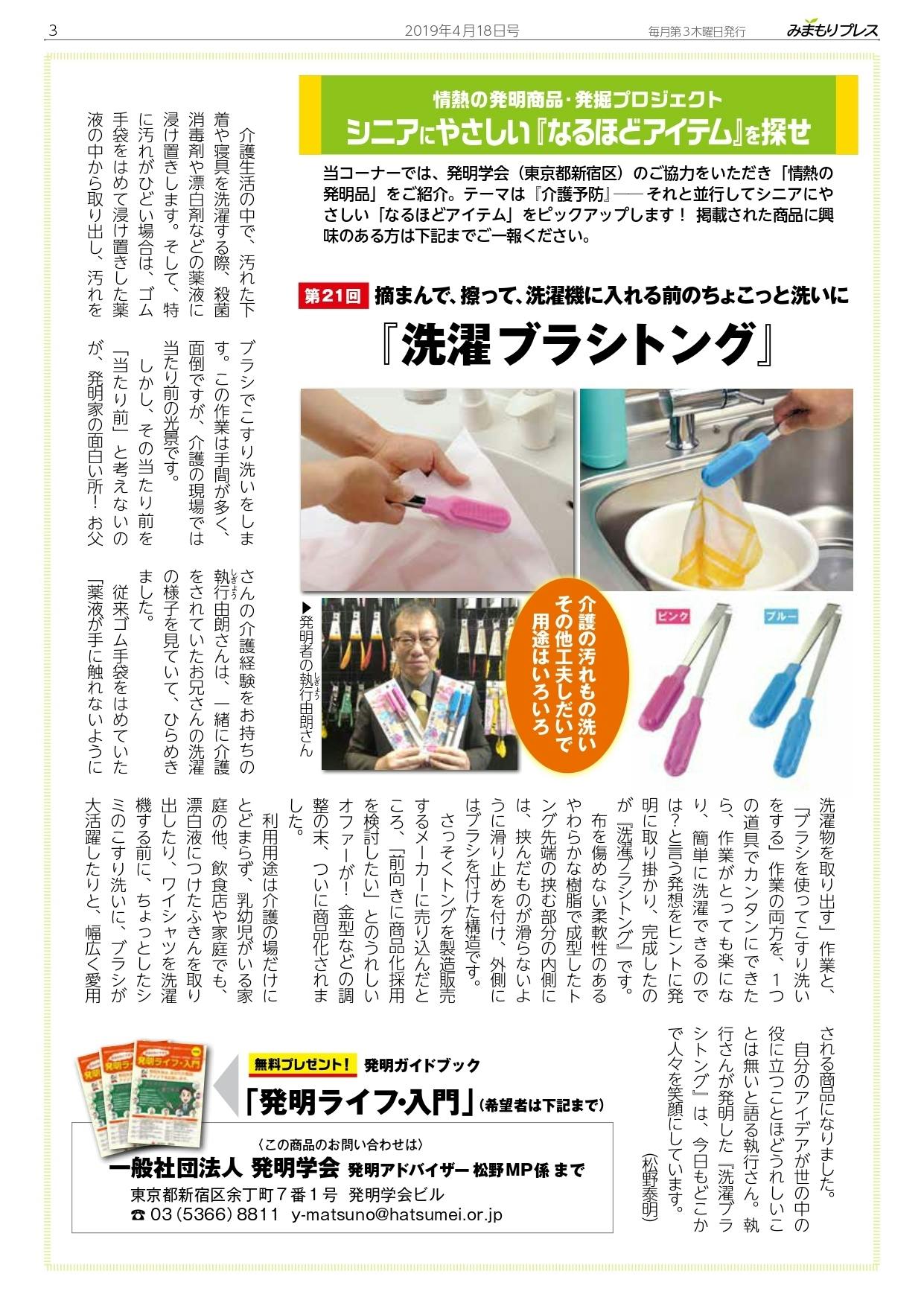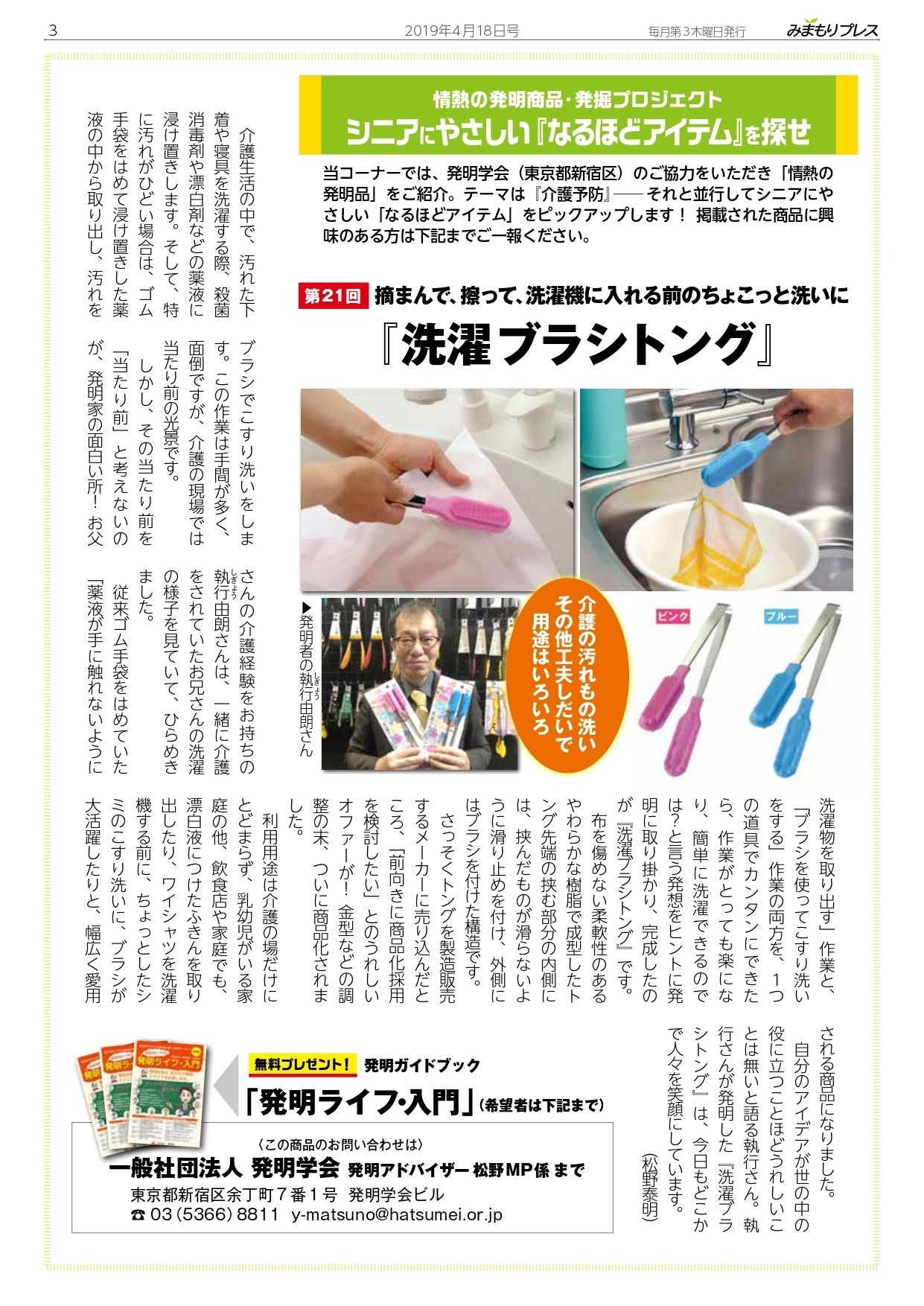 | 2019/4月『みまもりプレス04/18号』掲載 みまもりプレス | |