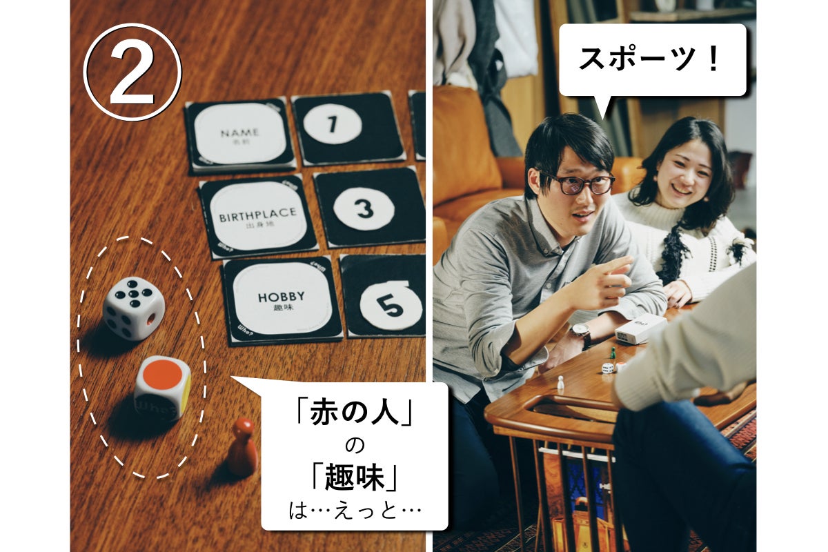2つのサイコロを振って、”数字”に対応する質問と、”色”に対応するプレーヤーの答えを先に叫びましょう。