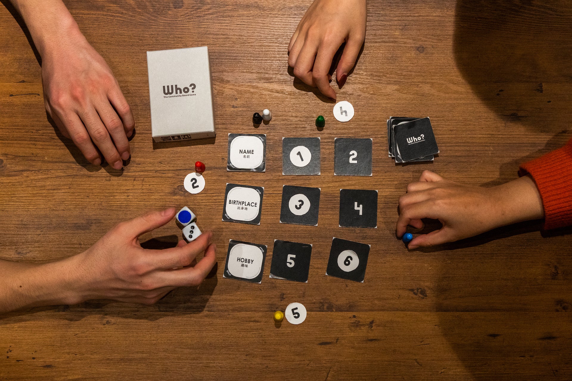 ボードゲームの魅力の一つである「初対面同士でもすぐに話がはずむ」という特徴を最大限に引き上げた、コミュニティボードゲーム『Who?』を是非お楽しみください!