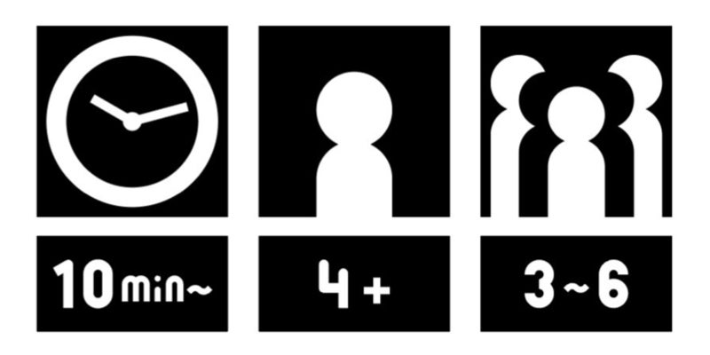 3分で終わるルール説明、5分で終わるゲームプレイ、準備片付けを含めても10〜15分でゲームが終了します。何かと時間がギチギチになってしまうイベントなどでも使いやすい設計。