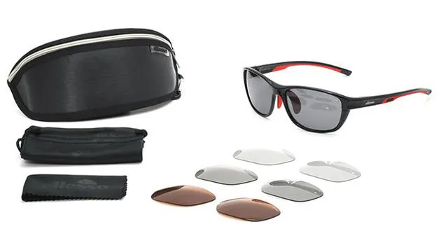 あらゆるシーンにマッチするエレッセスポーツサングラスES-S301(3枚の交換レンズ付属)に、人気の調光レンズを追加した<CAMPFIRE限定>交換レンズ4枚仕様。