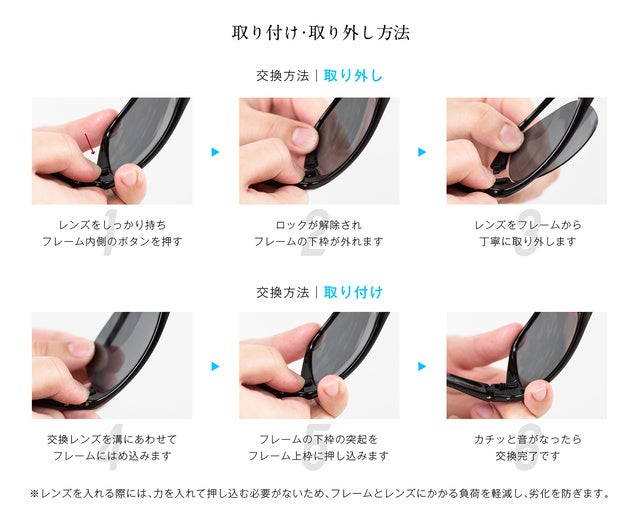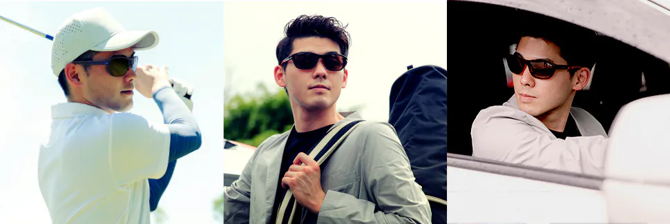 服装によってサングラスをつけ替える煩わしさを解消。