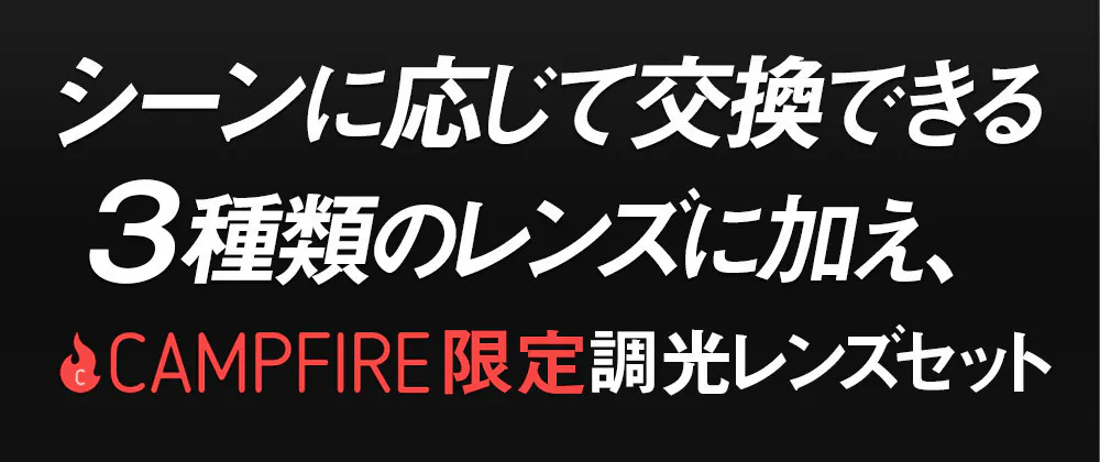 定番の3種類のレンズに調光スモークレンズをプラスした、Campfire限定の交換レンズ4枚セット。さらにレンズを分けて収納できる専用ソフトケース、サングラスを手軽に持ち運びできるサングラスポーチ、レンズクロスがついた充実のフルセット。