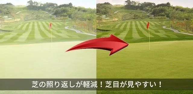 乱反射光をカットする効果に加え、景色をより鮮明に見せるハイコントラスト効果で、ゴルフや釣り等でターゲットの位置を把握しやすくなります。日本人の眼に馴染みやすいカラーで、眼の負担も軽減します。
