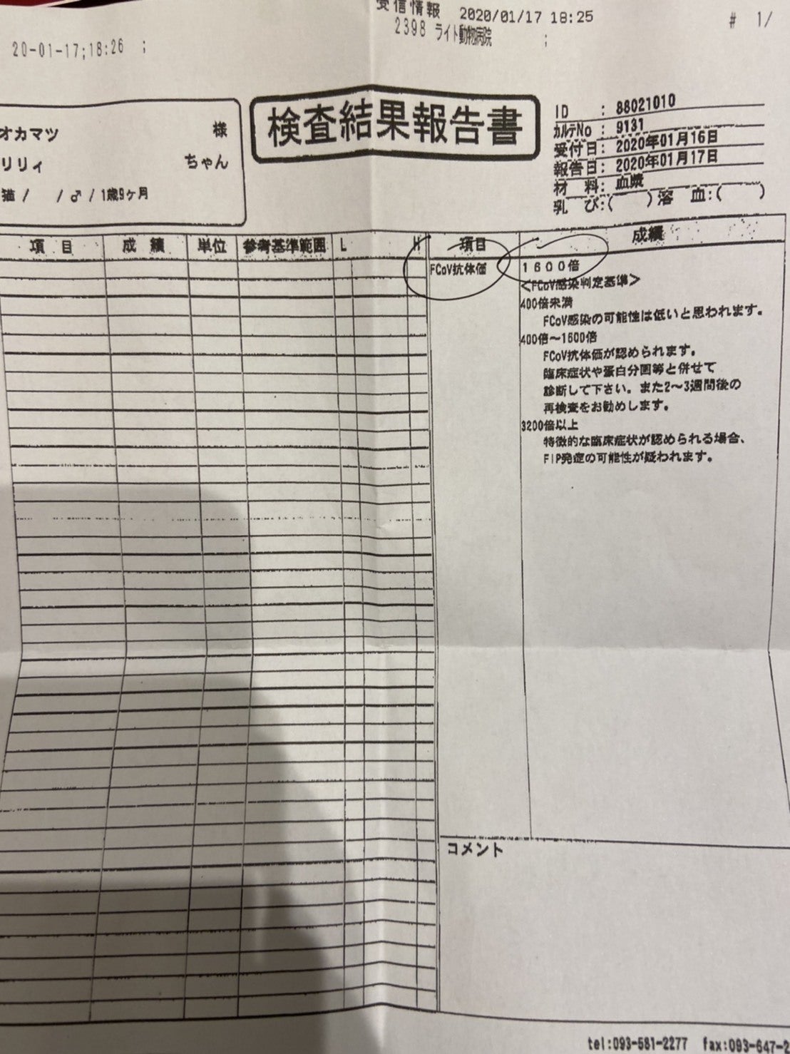 りりぃのFIP診断書について