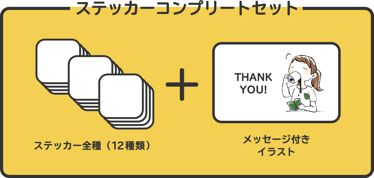 ステッカーコンプリートセット(ステッカー全シリーズ(12種)+メッセージ付きイラスト)