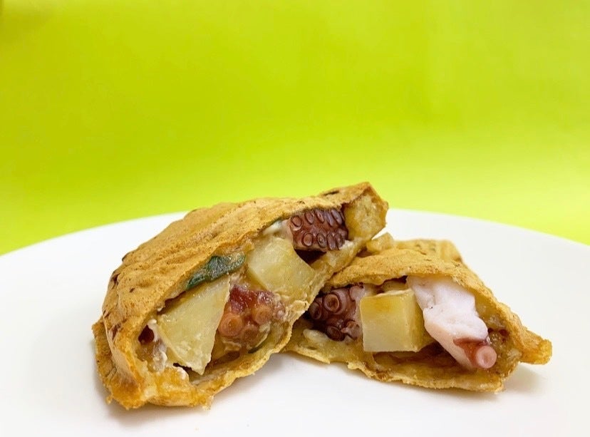 新鮮な対馬のタコと国産のじゃがいもをたこ焼き風の具として入れて焼いた「じゃがタコたい」