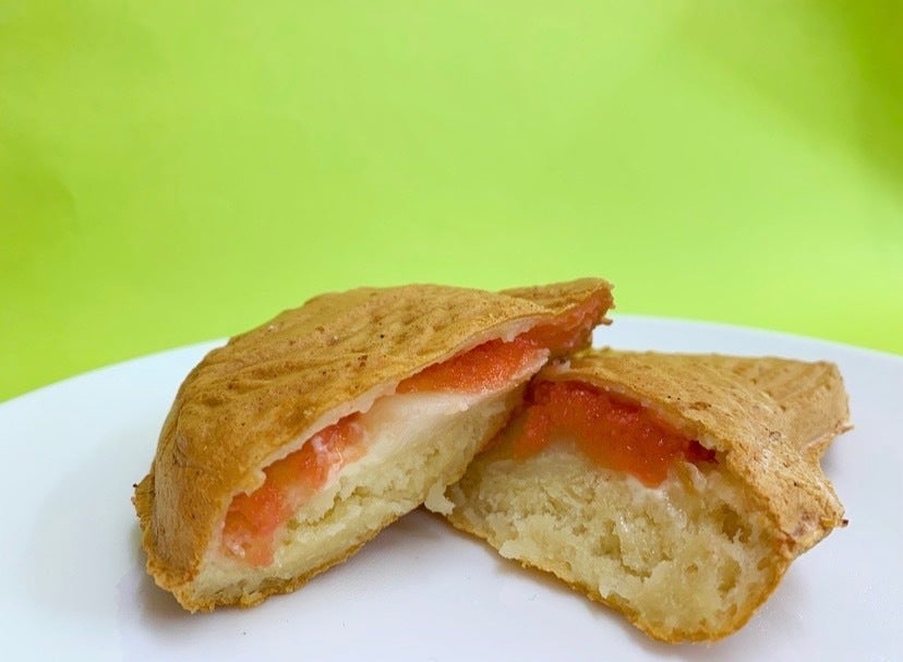 地元で30年間辛子明太子を作っておられる明太子屋さんの明太子を使用しています。マイルドな中にもピリッと辛い、味わいのある明太子が、じゃが芋のほっくり感と相まって美味しいたい焼きに焼きあがりました。