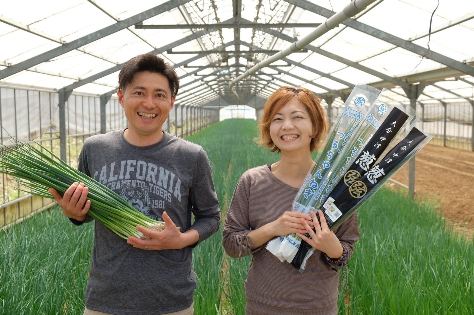 仲の良いご夫婦の愛情たっぷりに育った健康なつるちゃんねぎ