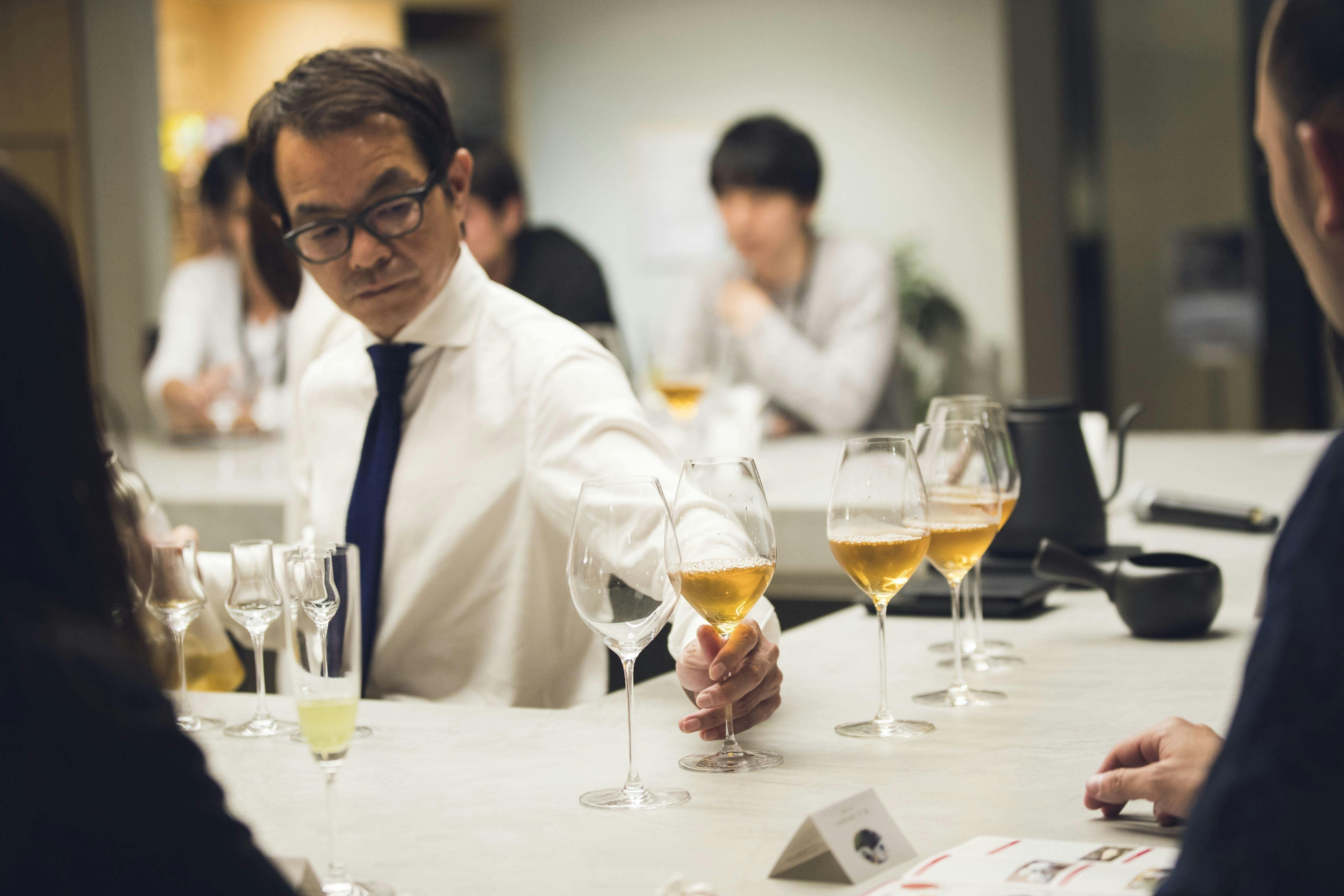 完成したボトリングティーはもとより、「僕の意識がひっくり返った体験を共有してほしい」という思いから、八女のティーマスターたちにお願いして、実際にその場で、最高峰の八女茶を4種類飲んでいただくイベント形式の体験会もご準備しました。