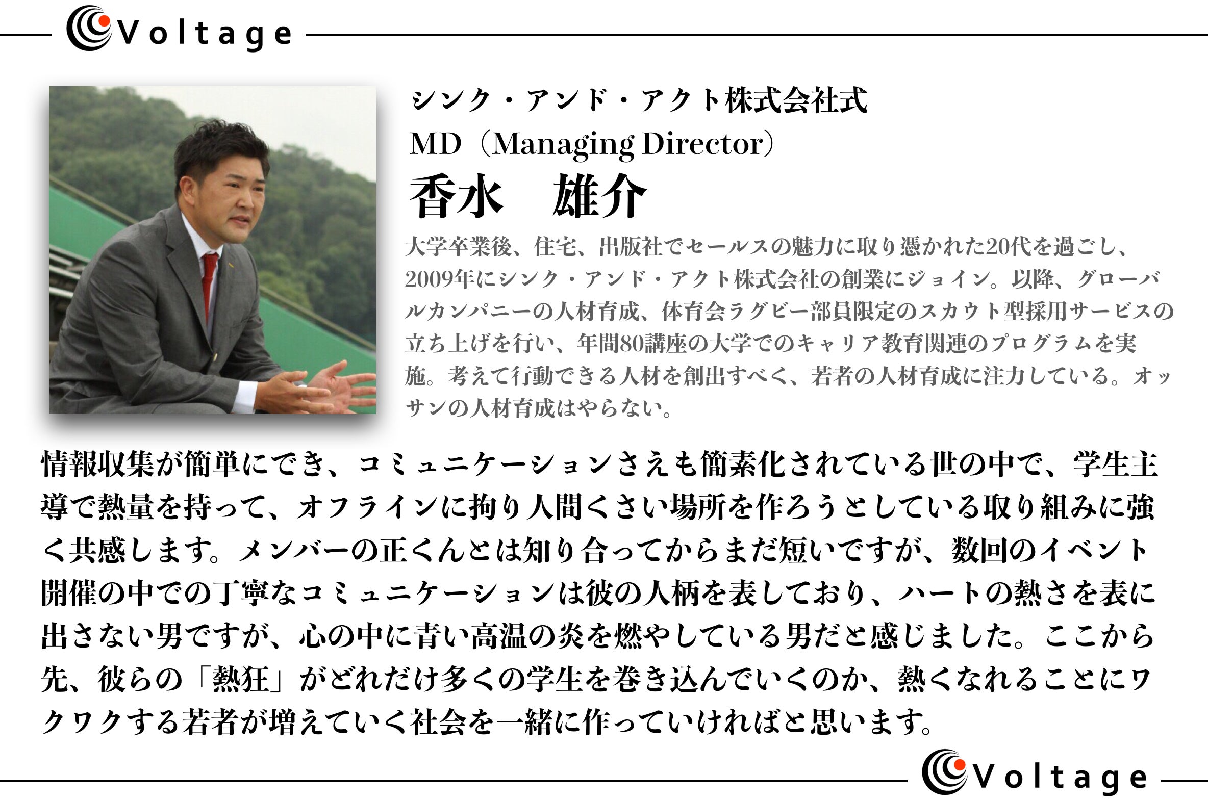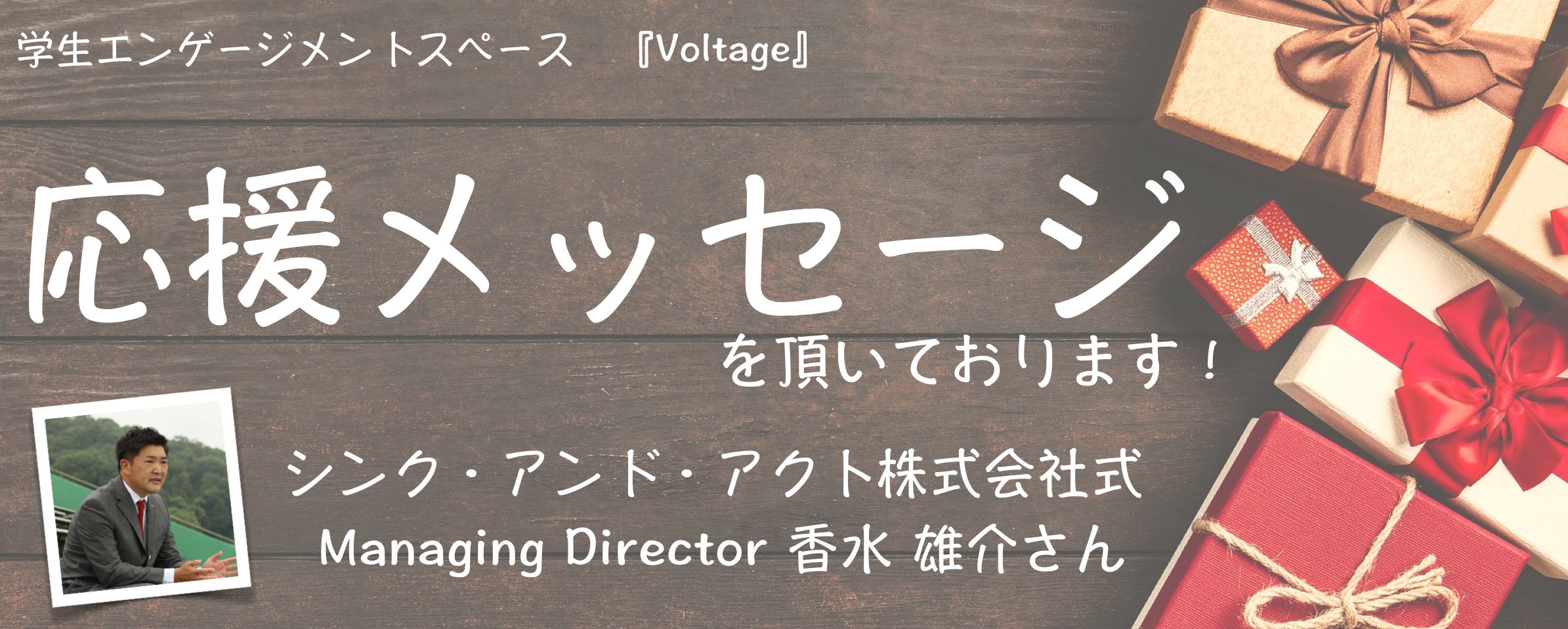 Managing Directer 加水 雄介さんより、メッセージを頂きました!