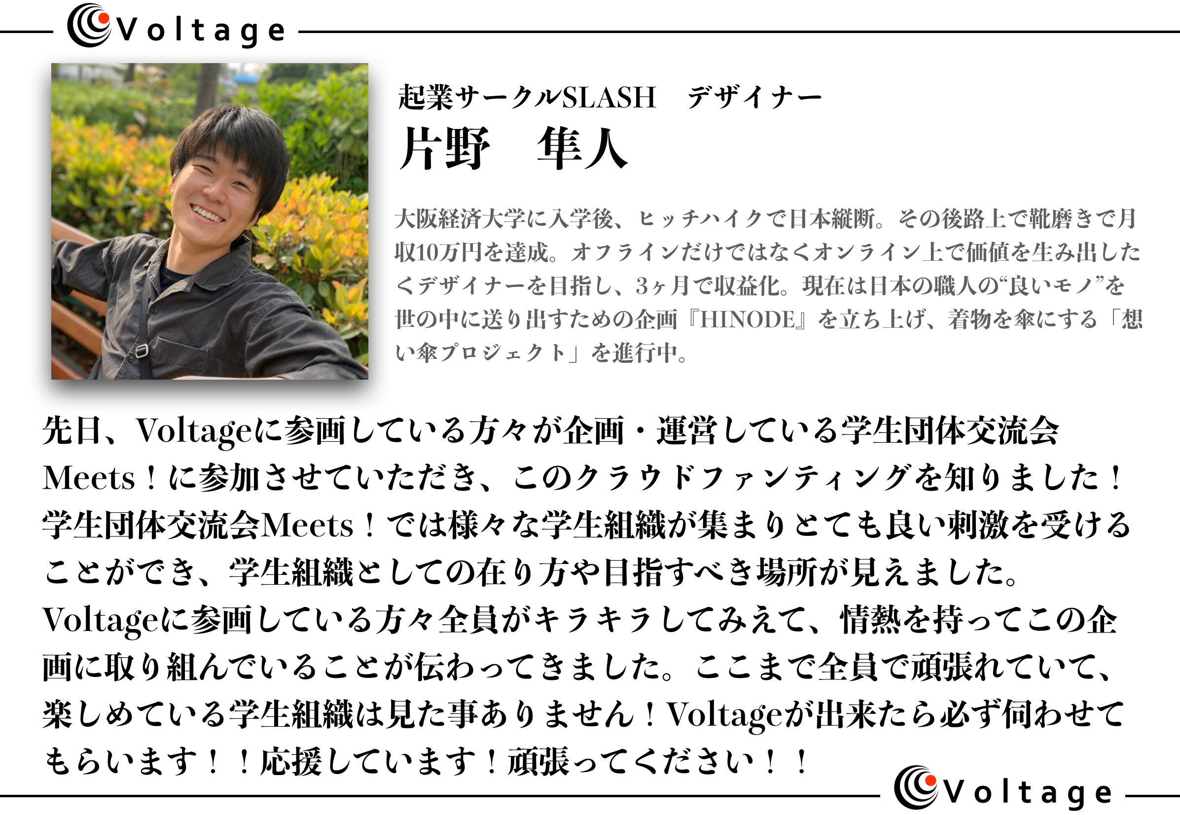 今回は、起業サークルSLASHにてデザイナーを担当されている片野隼人さんです!